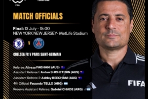 北京时间7月14日周一凌晨3点,切尔西和巴黎圣日耳曼将在世俱杯决赛碰面,国际足联今天公布了决赛裁判名单,具体如下: