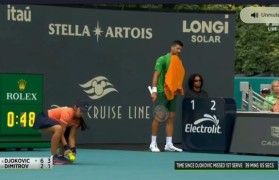 体坛周报全媒体记者 张奔斗 被迈阿密大师赛半决赛直播中的这个截屏惊到,也被这个截屏笑死——“距离德...