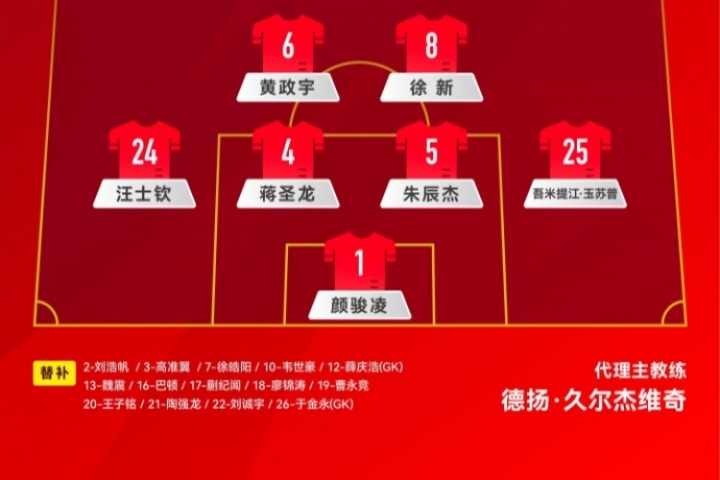 若本场比赛赛中国足不更换门将,24岁薛庆浩和21岁于金永将暂时无缘为国足出战。